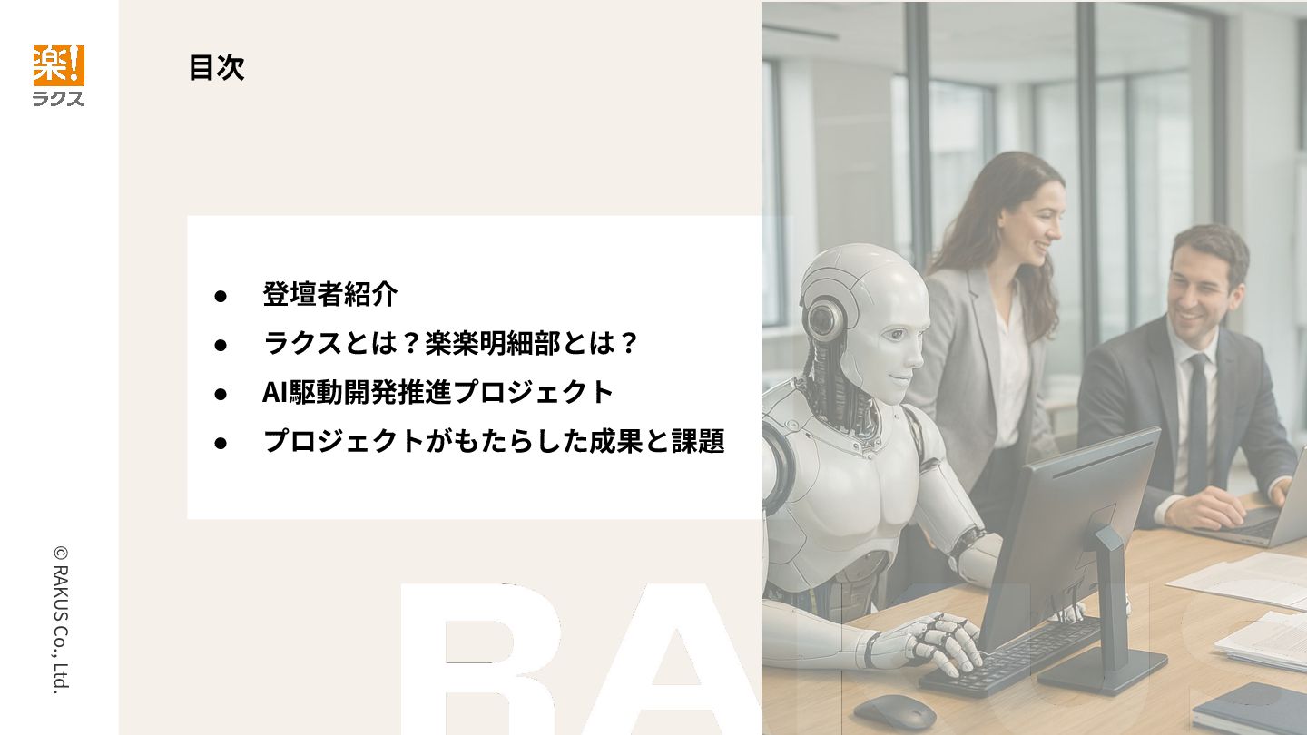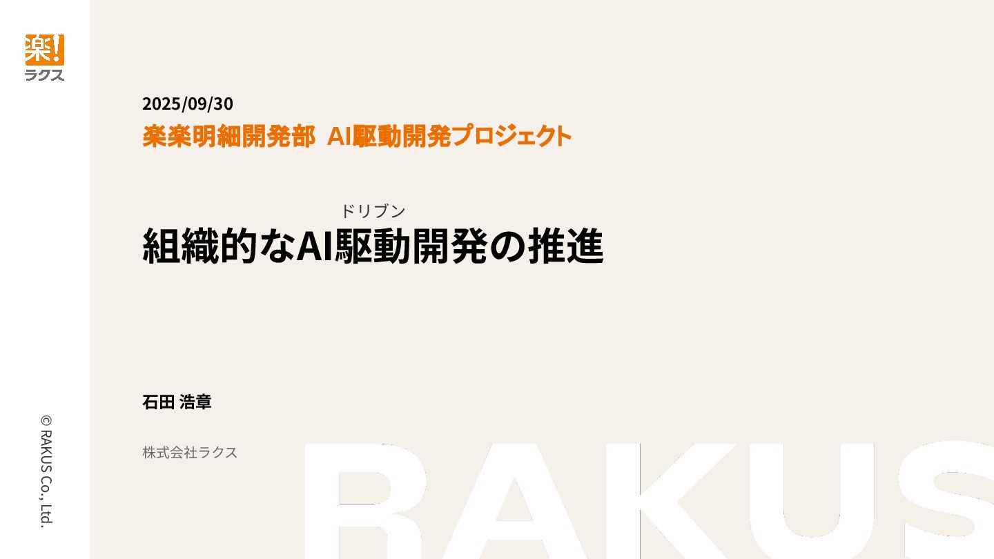 ◆発表タイトル 楽楽明細開発部 | 組織的なAI駆動開発の推進
