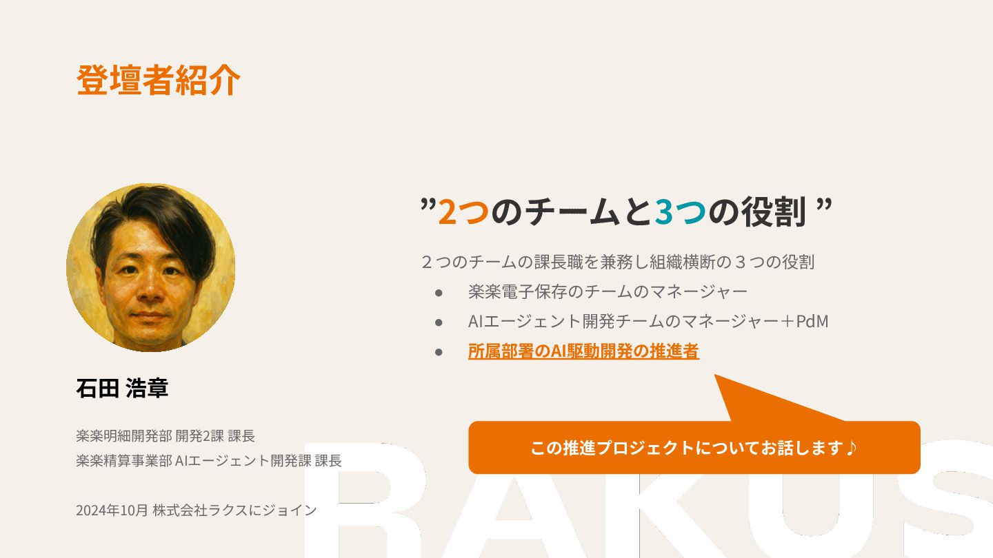 ◆登壇者 株式会社ラクス AIエージェント開発課 課長 石田 浩章