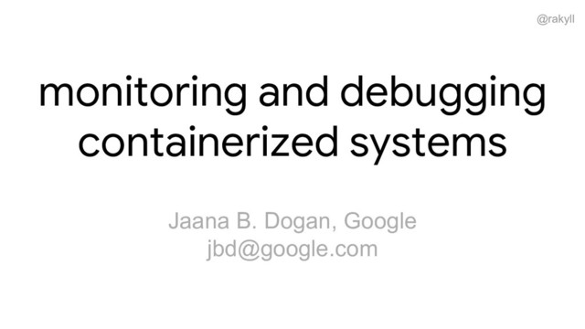 @rakyll monitoring and debugging containerized systems Jaana B. Dogan, Google