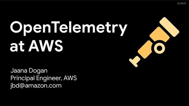 @rakyll OpenTelemetry at AWS Jaana Dogan Principal Engineer, AWS