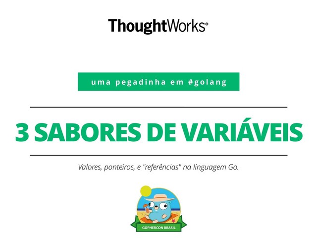 Além de valores e ponteiros, Go tem um sabor peculiar de "referências". Slices e maps por exemplo são variáveis dessa natureza. No caso de slices, isso pode trazer algumas surpresas desagradáveis. Essa palestra apresenta o problema para você saber como enfrentá-lo.