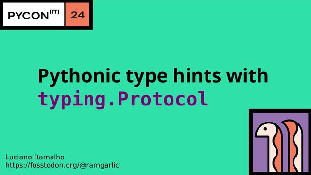 Duck typing is essential to idiomatic Python. Since Python 3.8, typing.Protocol allows static type checkers to verify APIs based on duck typing, a.k.a. structural typing. Using it is key to write well annotated Pythonic code.