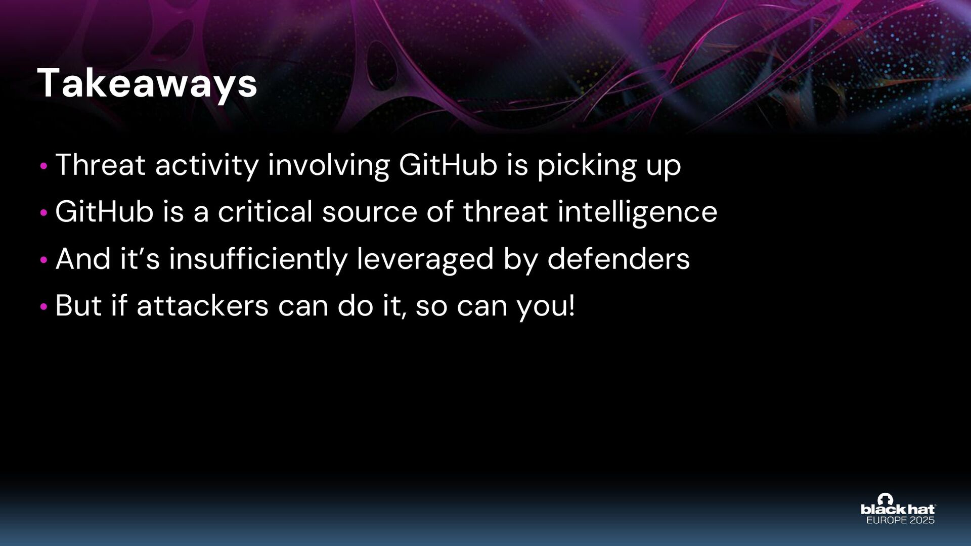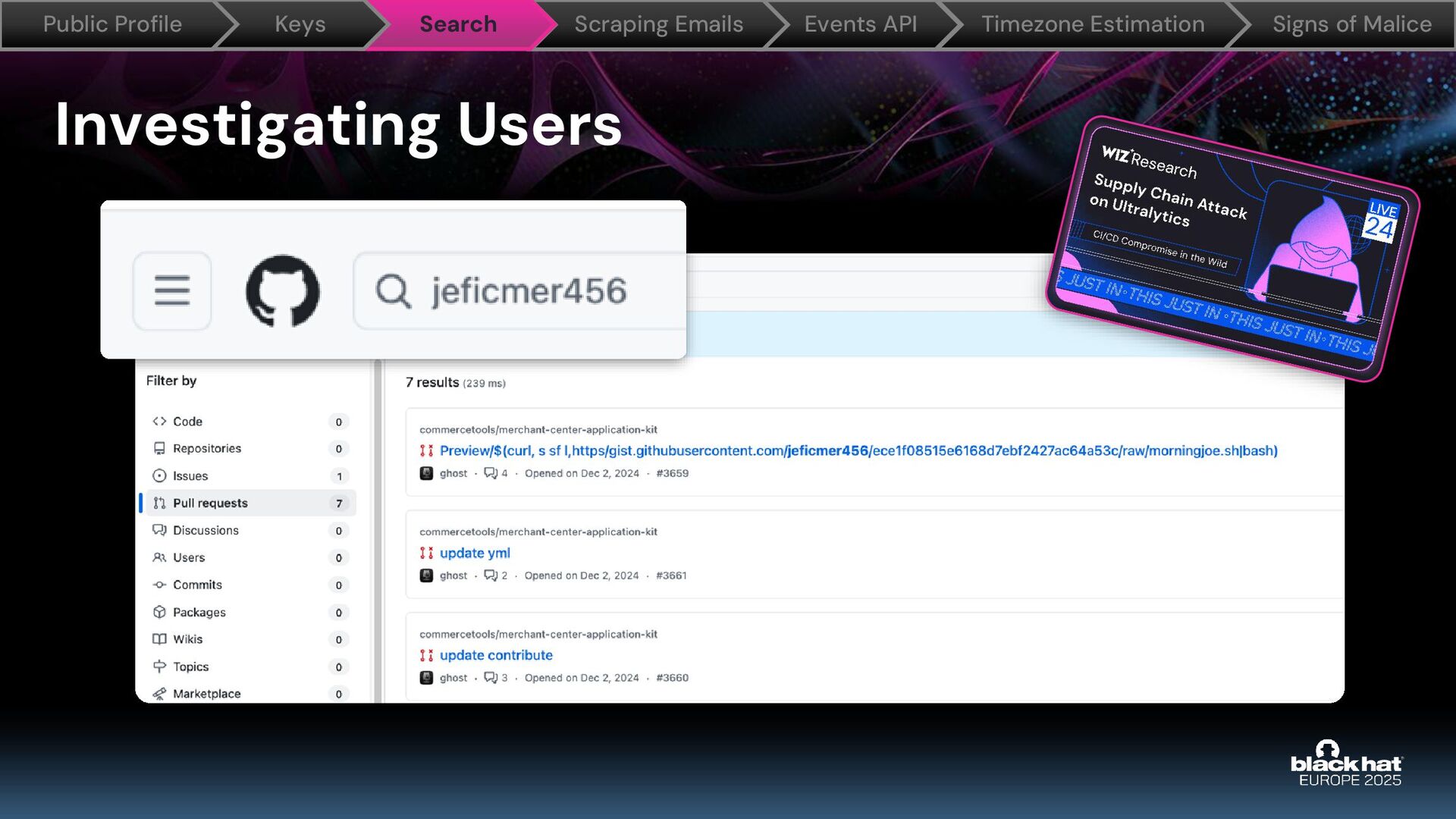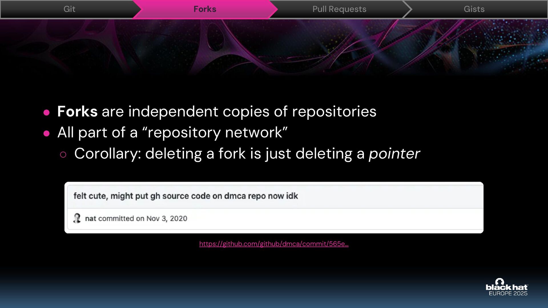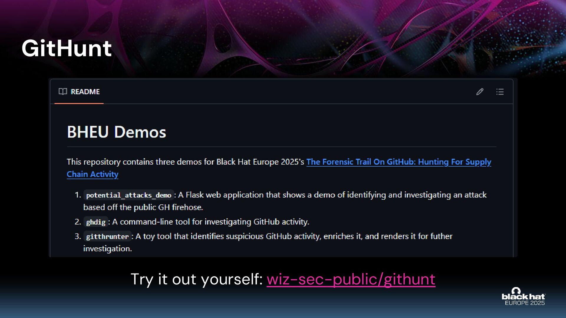 behavioral heuristics, uncover attacker forks, and recover deleted gists and commits. We'll also