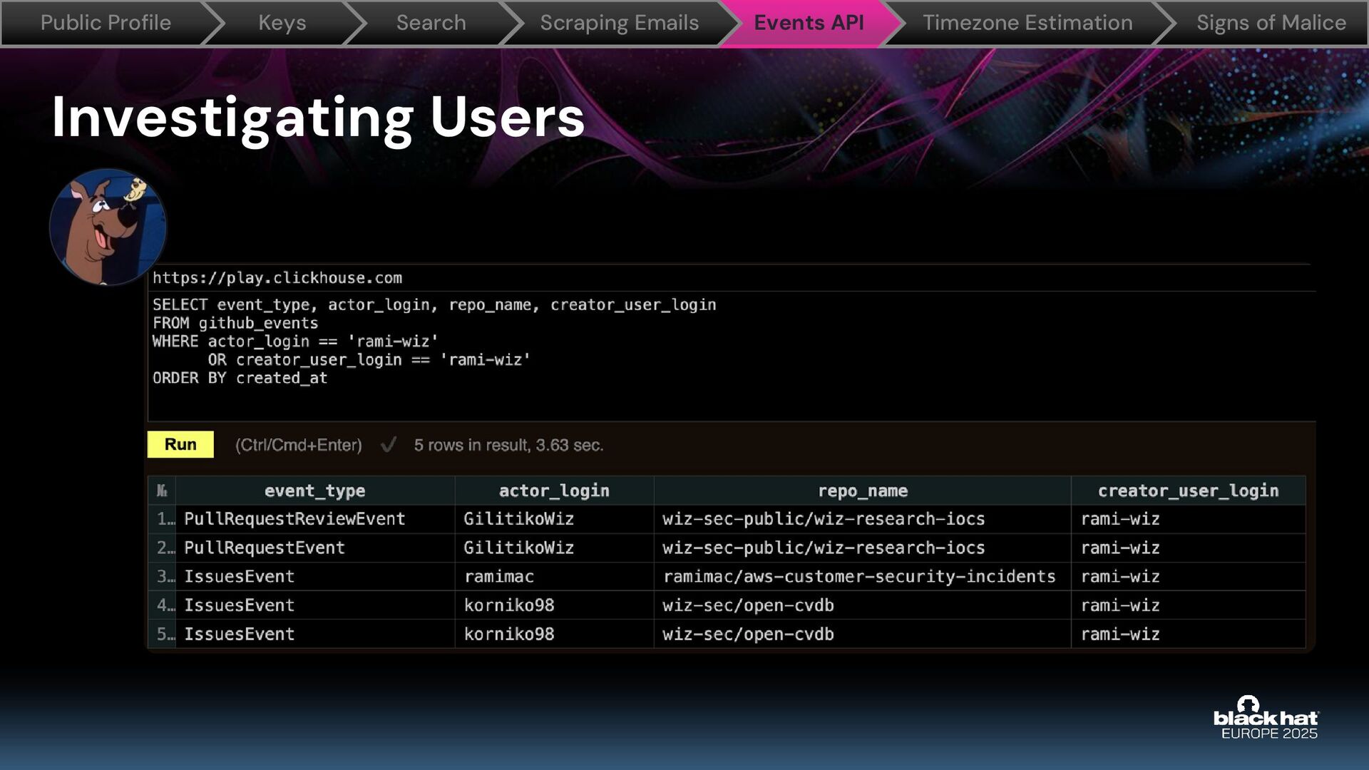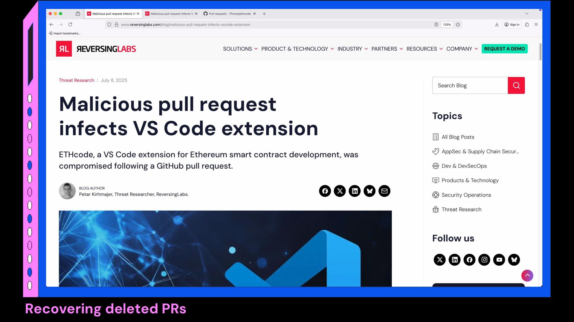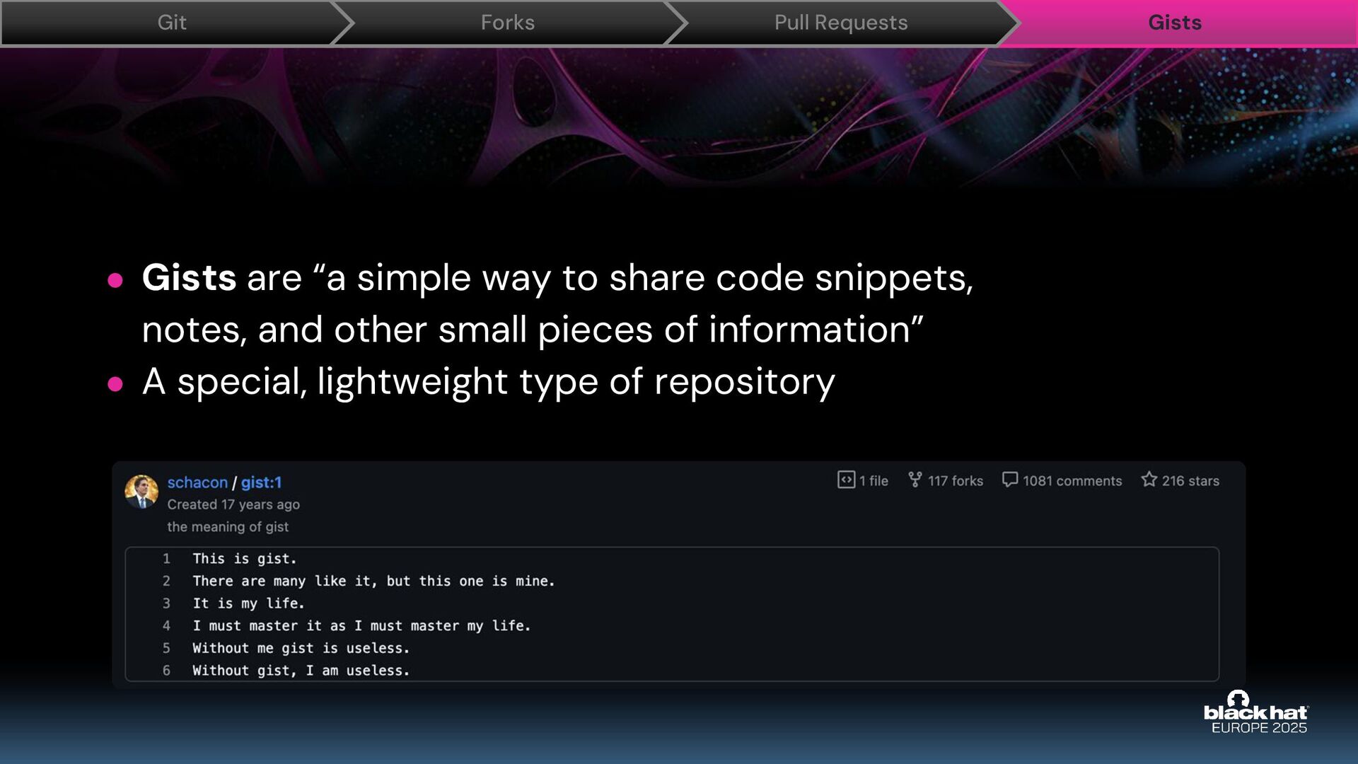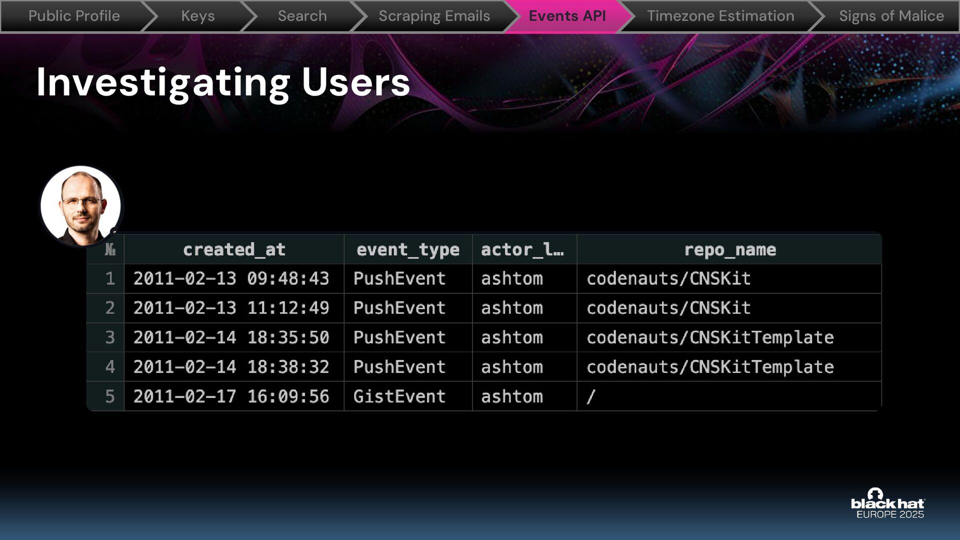 behavioral heuristics, uncover attacker forks, and recover deleted gists and commits. We'll also