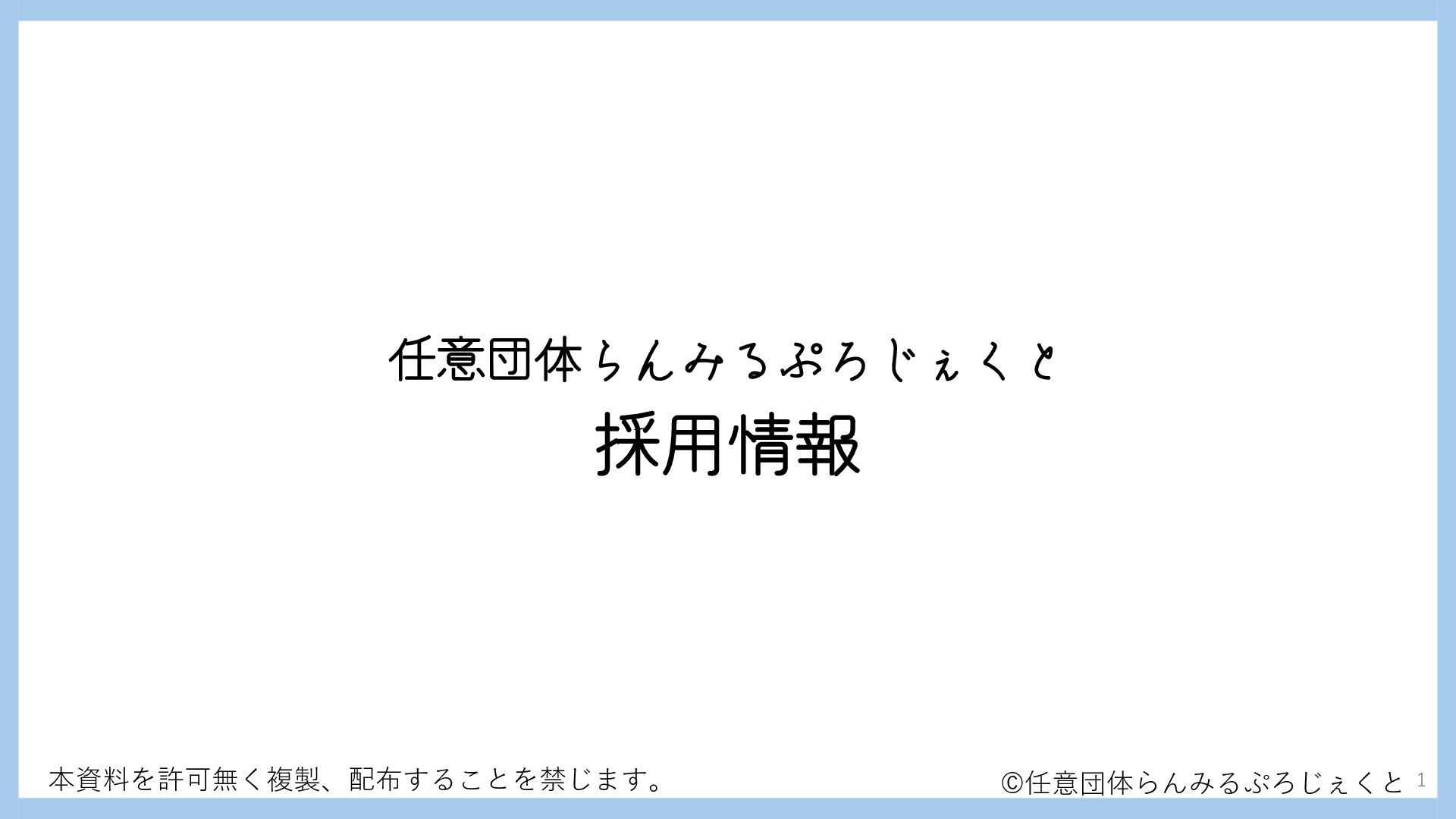 採用情報 任意団体らんみるぷろじぇくと 1 本資料を許可無く複製、配布することを禁じます。 ©任意団体らんみるぷろじぇくと