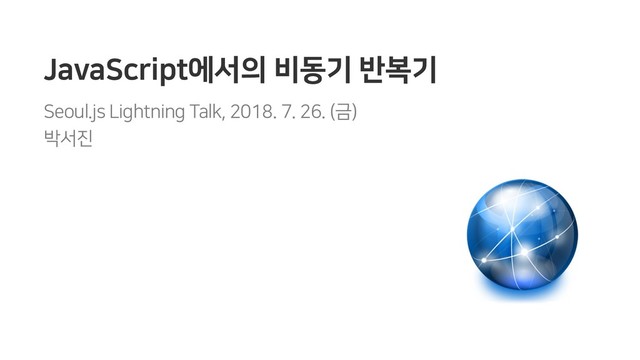 JavaScript에서의 비동기 반복기 Seoul.js Lightning Talk, 2018. 7. 26. (금)
