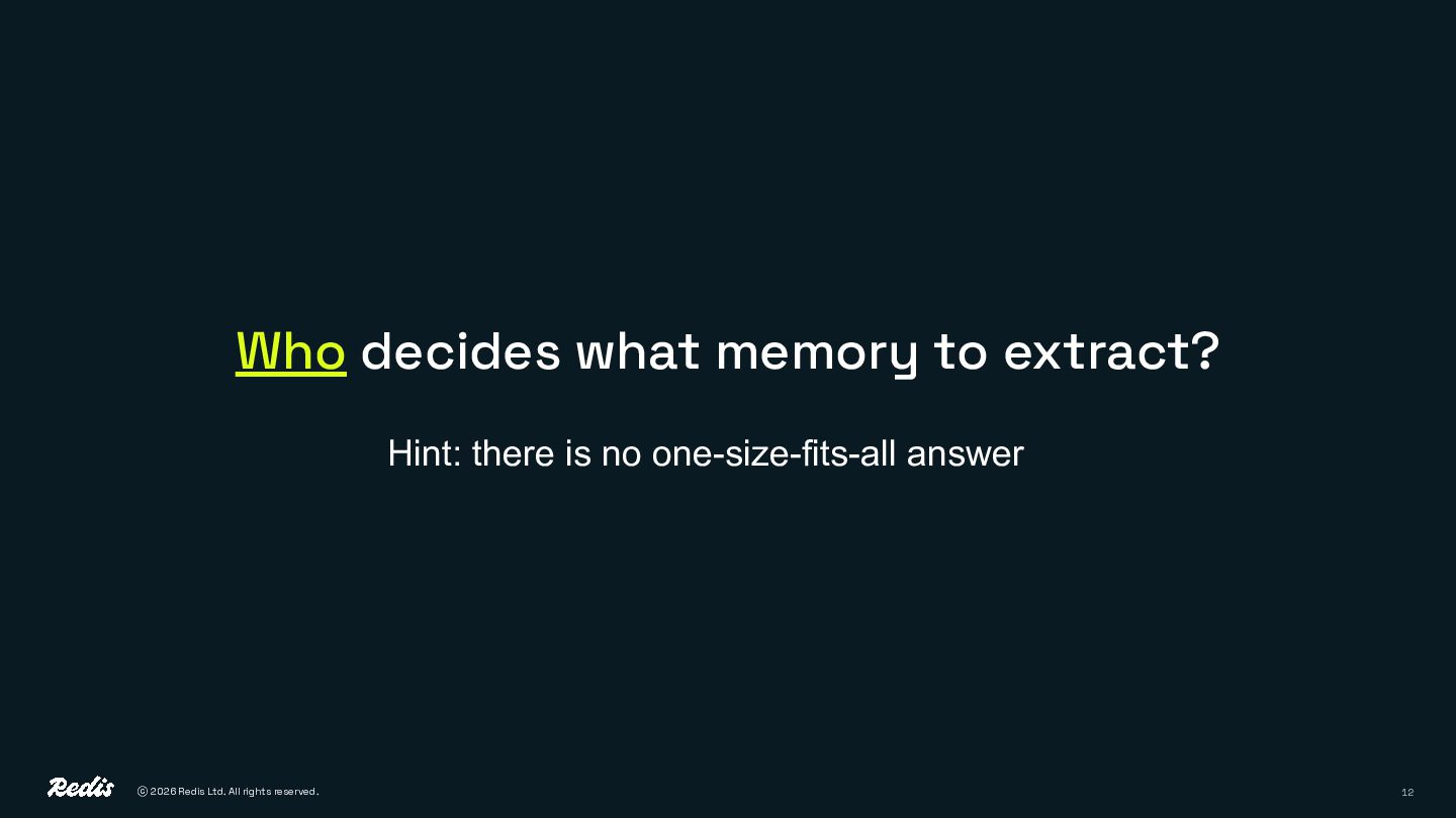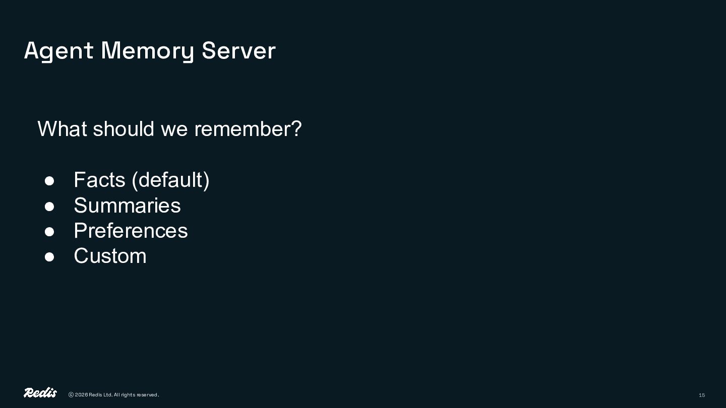 12. ⓒ 2026 Redis Ltd. All rights reserved. 15 Agent Memory