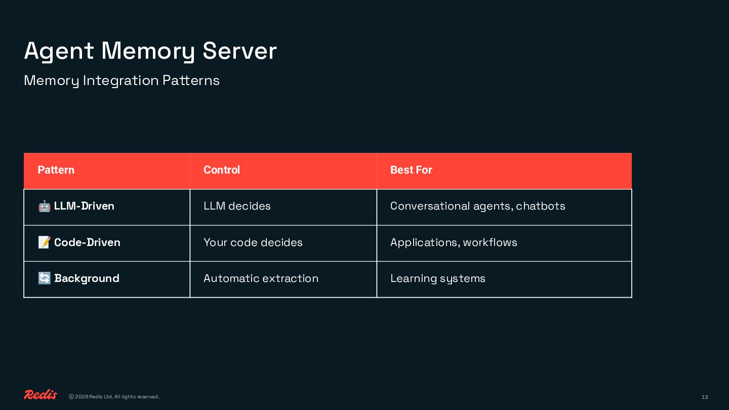 10. ⓒ 2026 Redis Ltd. All rights reserved. 13 Agent Memory
