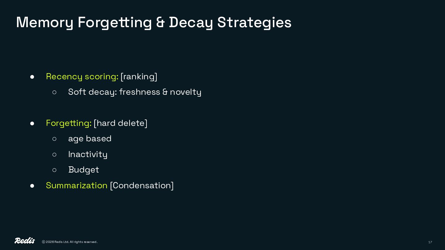 14. ⓒ 2026 Redis Ltd. All rights reserved. 17 Memory Forgetting