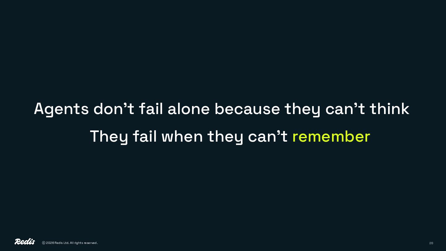 16. ⓒ 2026 Redis Ltd. All rights reserved. 20 Agents don’t