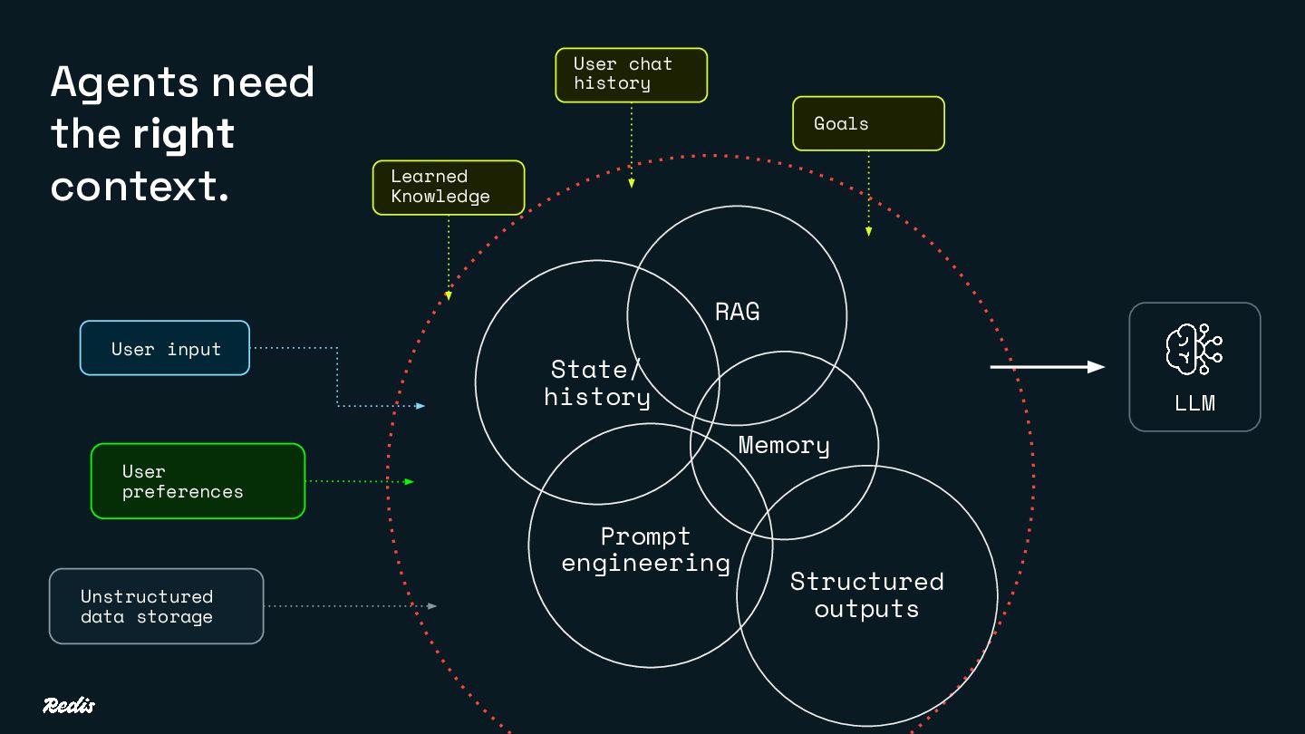 User input User chat history Unstructured data storage Agents need the right context. LLM Goals Learned Knowledge