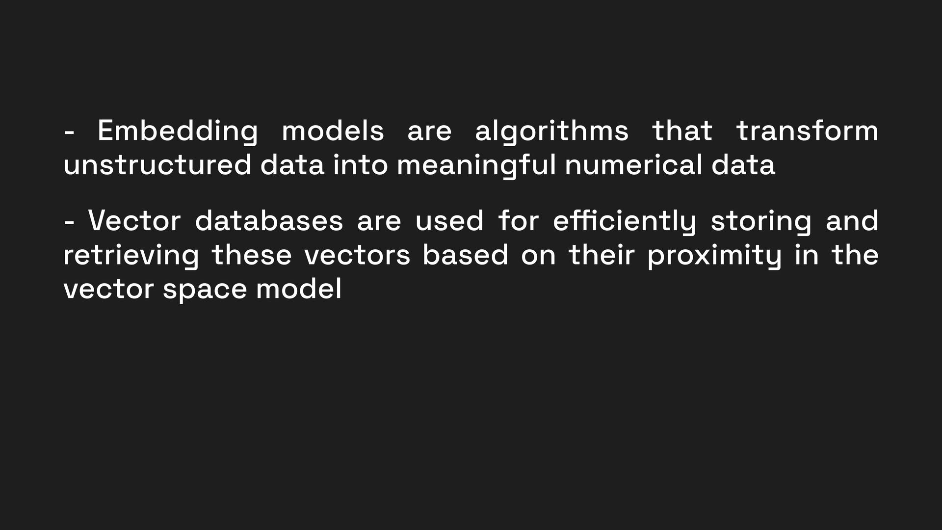 meaningful numerical data - Vector databases are used for e ff i ciently storing and retrieving these vectors based on their proximity in the vector space model