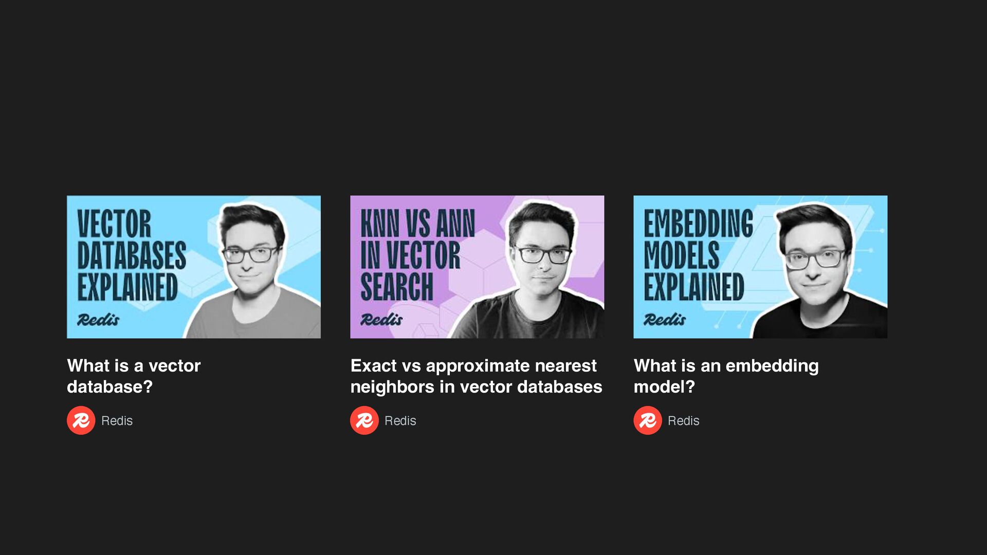 semanticCache( jedis: UnifiedJedis, vectorizer: BaseVectorizer ): SemanticCache { return SemanticCache.Builder() .name("semantic-cache") .distanceThreshold(0.2F) .ttl(360) .redisClient(jedis) .vectorizer(vectorizer) .build() } val cached = semanticCache.check(request.query) if (cached.isPresent) { val c = cached.get() return CachedResponse( query = request.query, answer = c.response, ) }