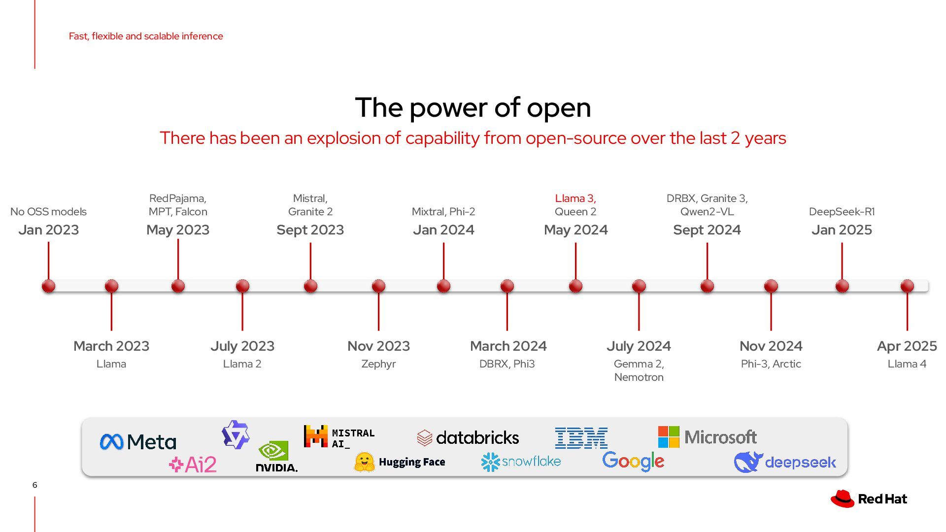capability from open-source over the last 2 years Fast, flexible and scalable inference 6 Llama 3, Queen 2 Llama 2 No OSS models Jan 2023 March 2023 Llama RedPajama, MPT, Falcon Sept 2023 Mistral, Granite 2 Jan 2024 Mixtral, Phi-2 May 2023 July 2023 Zephyr Nov 2023 May 2024 DBRX, Phi3 March 2024 DRBX, Granite 3, Qwen2-VL Sept 2024 Gemma 2, Nemotron July 2024 DeepSeek-R1 Jan 2025 Phi-3, Arctic Nov 2024 Llama 4 Apr 2025