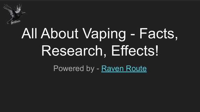 Being new to the world of vaping, you most likely still have a lot of questions about electronic cigarettes and how they work. Checkout our new Presentation All About Vaping - Facts, Research, Effects! if you are looking to Buy Disposable Vape in Discounted Prices visit us on https://ravenroute.com/products/puff-xxl