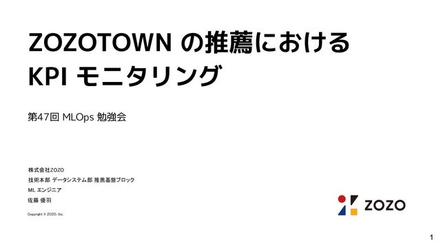 優羽 Copyright © ZOZO, Inc. 1 ZOZOTOWN の推薦における KPI モニタリング