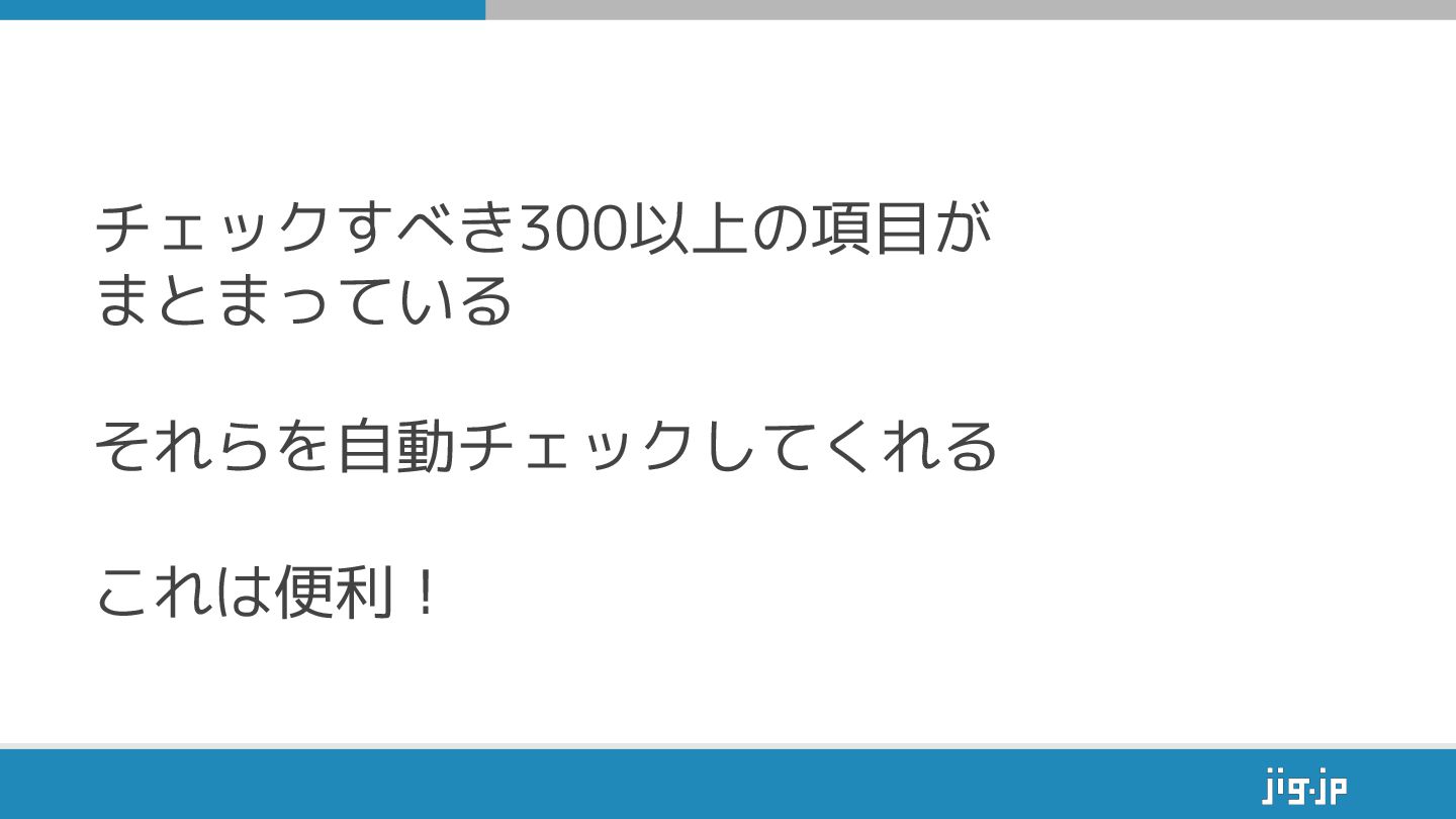 チェックすべき300以上の項目が まとまっている それらを自動チェックしてくれる これは便利!