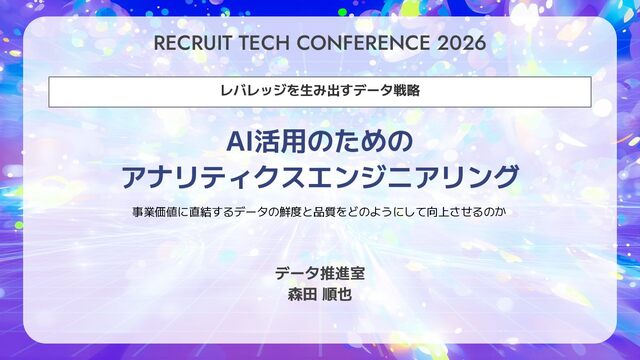 RECRUIT TECH CONFERENCE 2026 レバレッジを生み出すデータ戦略 AI活用のための アナリティクスエンジニアリング データ推進室 森田 順也