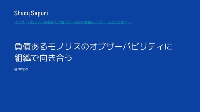 #o11y_findy 負債あるモノリスのオブザーバビリティに組織で向き合う@スタディサプリ 負債あるモノリスのオブザーバビリティに 組織で向き合う @mopp オブザーバビリティ実践までの道のり〜各社の課題とアプローチ方法とは?〜