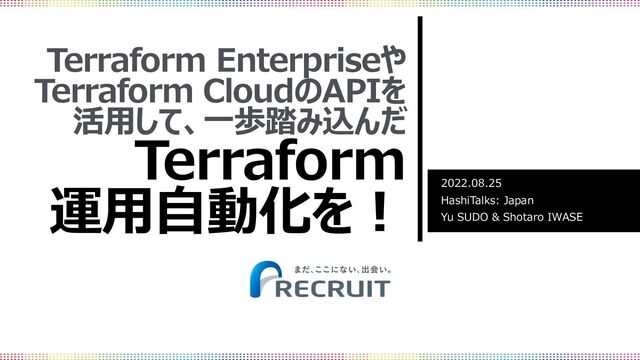 Terraform Enterpriseや Terraform CloudのAPIを 活⽤して、⼀歩踏み込んだ Terraform 運⽤⾃動化を︕ 2022.08.25 HashiTalks: Japan