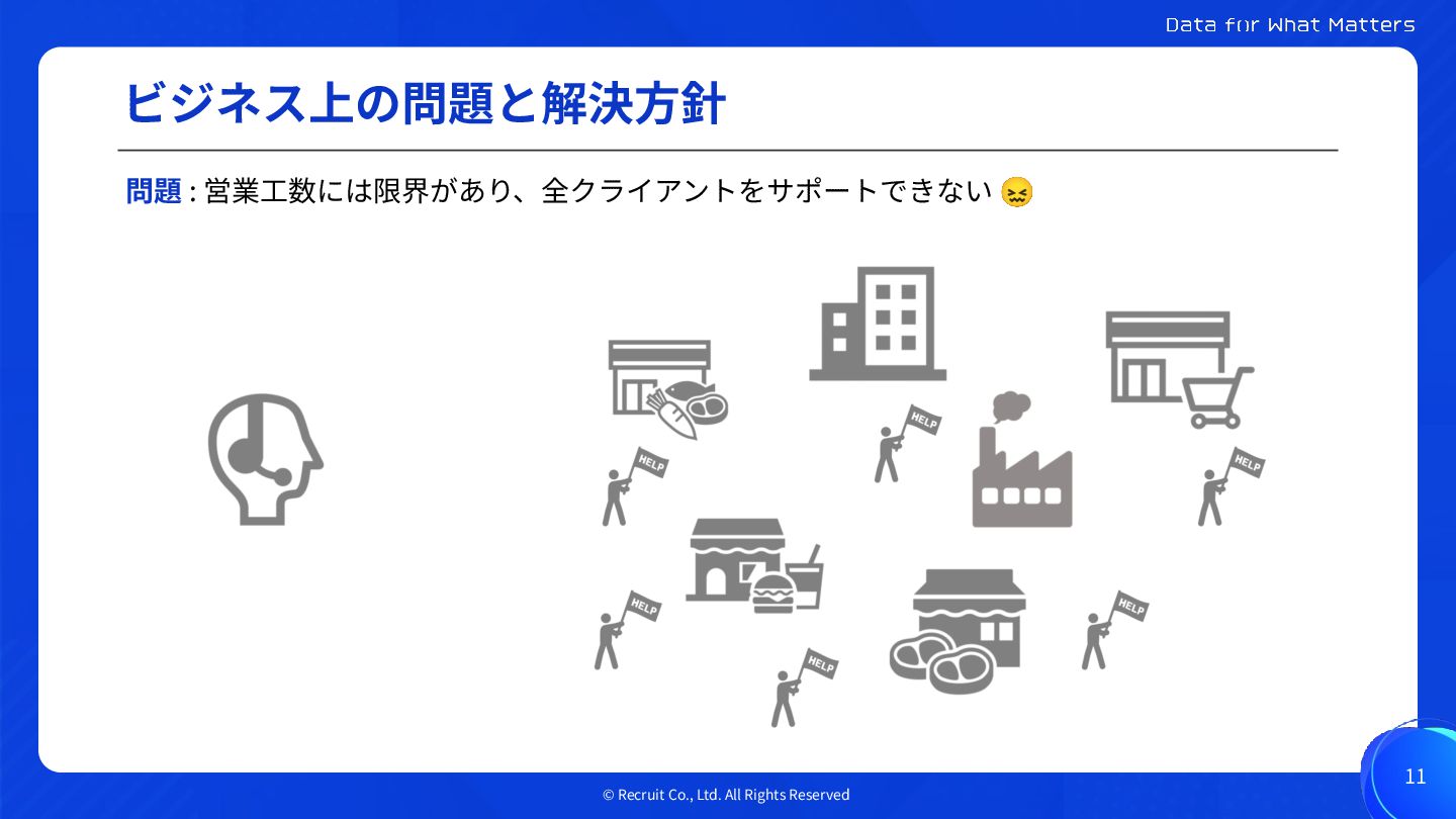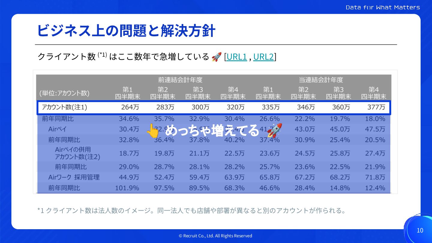 © Recruit Co., Ltd. All Rights Reserved ビジネス上の問題と解決⽅針 10 クライアント数