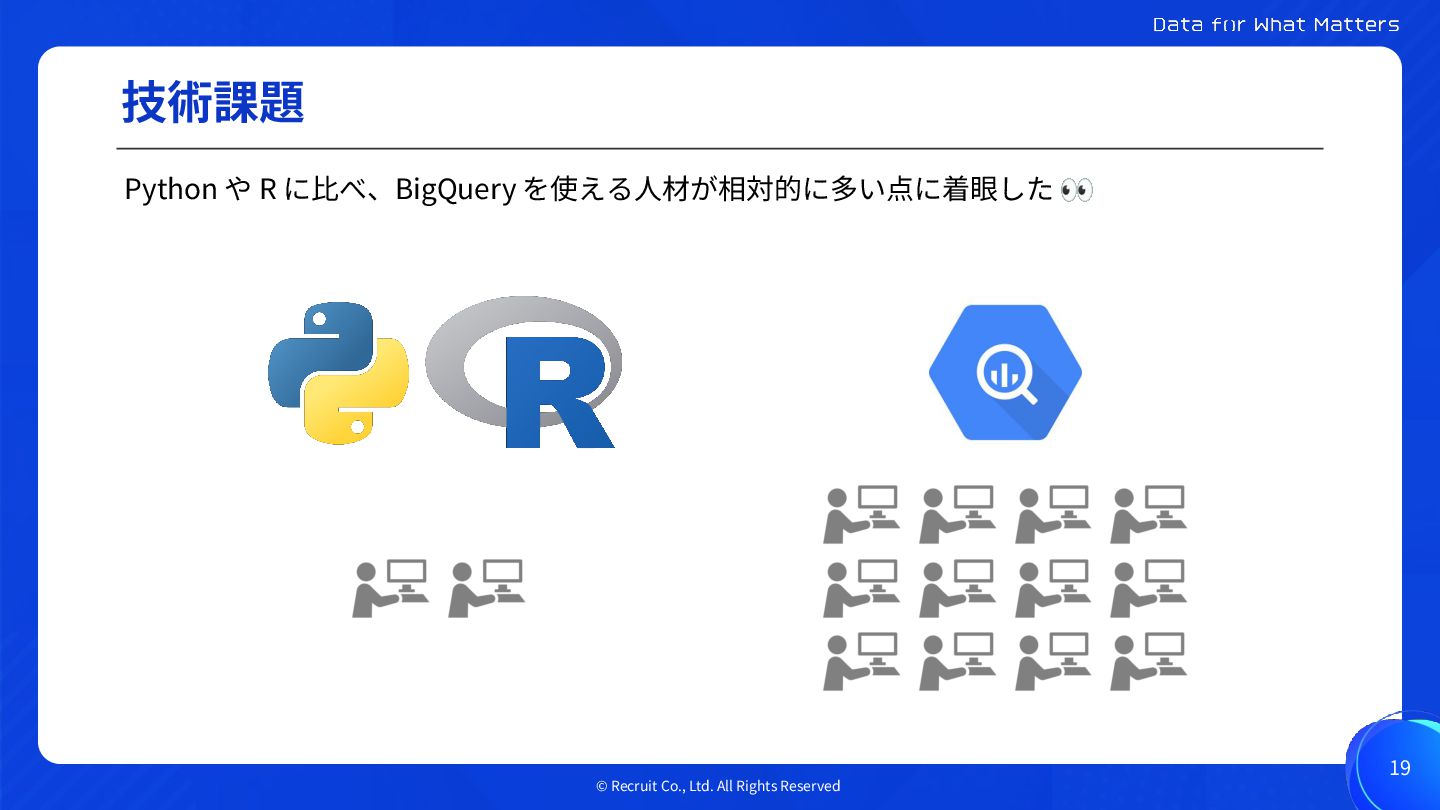 や R に⽐べ、BigQuery を使える⼈材が相対的に多い点に着眼した 👀