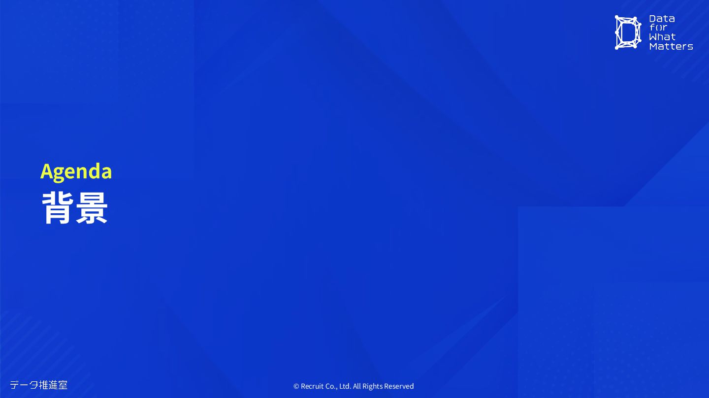 © Recruit Co., Ltd. All Rights Reserved 背景 Agenda
