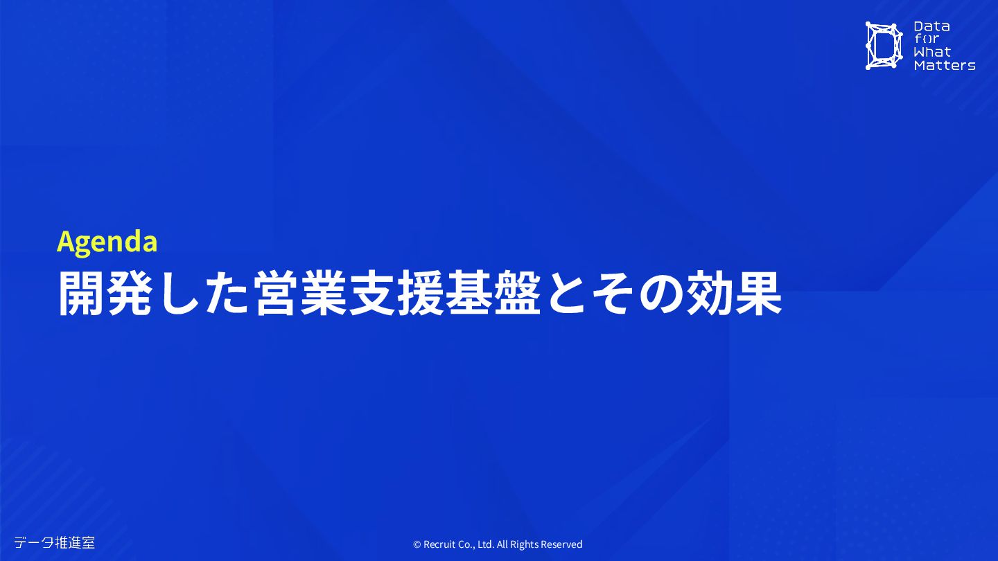 © Recruit Co., Ltd. All Rights Reserved 開発した営業⽀援基盤とその効果 Agenda
