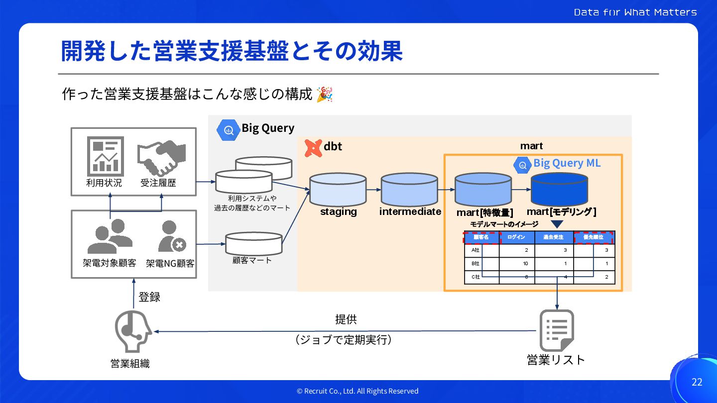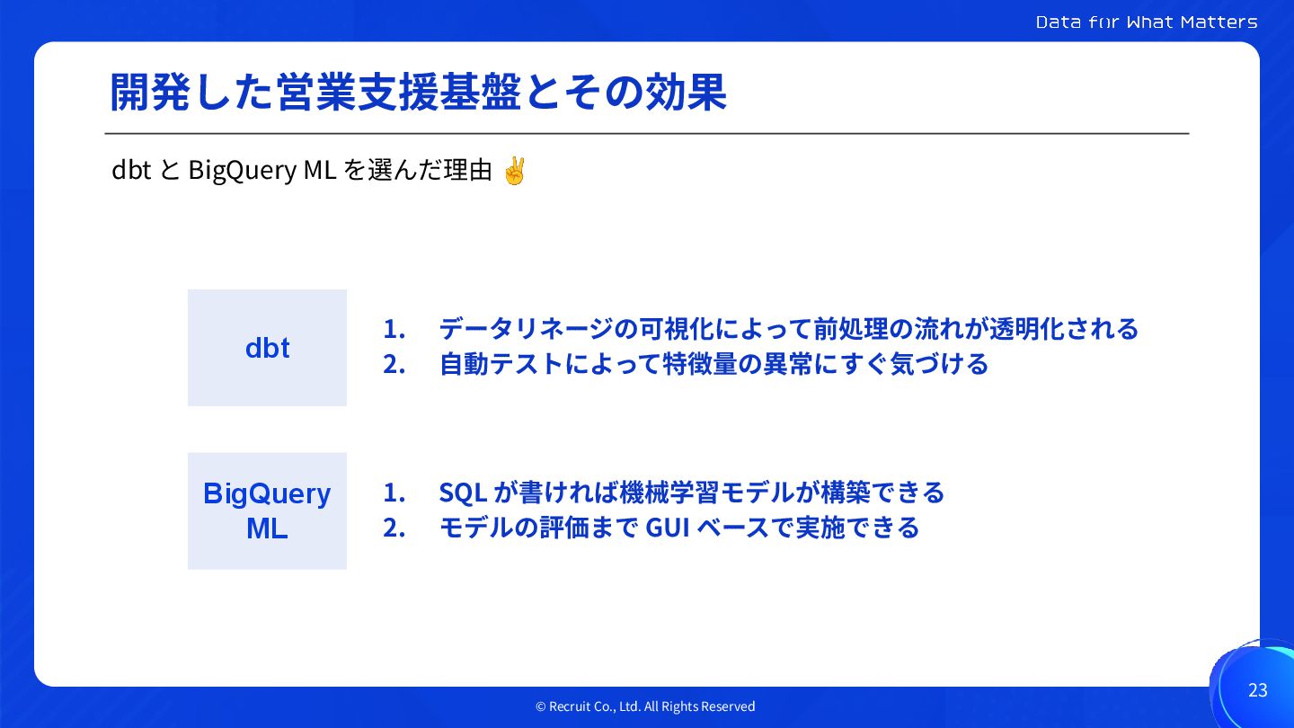 dbtとBigQuery MLで実現する リクルートの営業支援基盤のモデル開発と保守運用