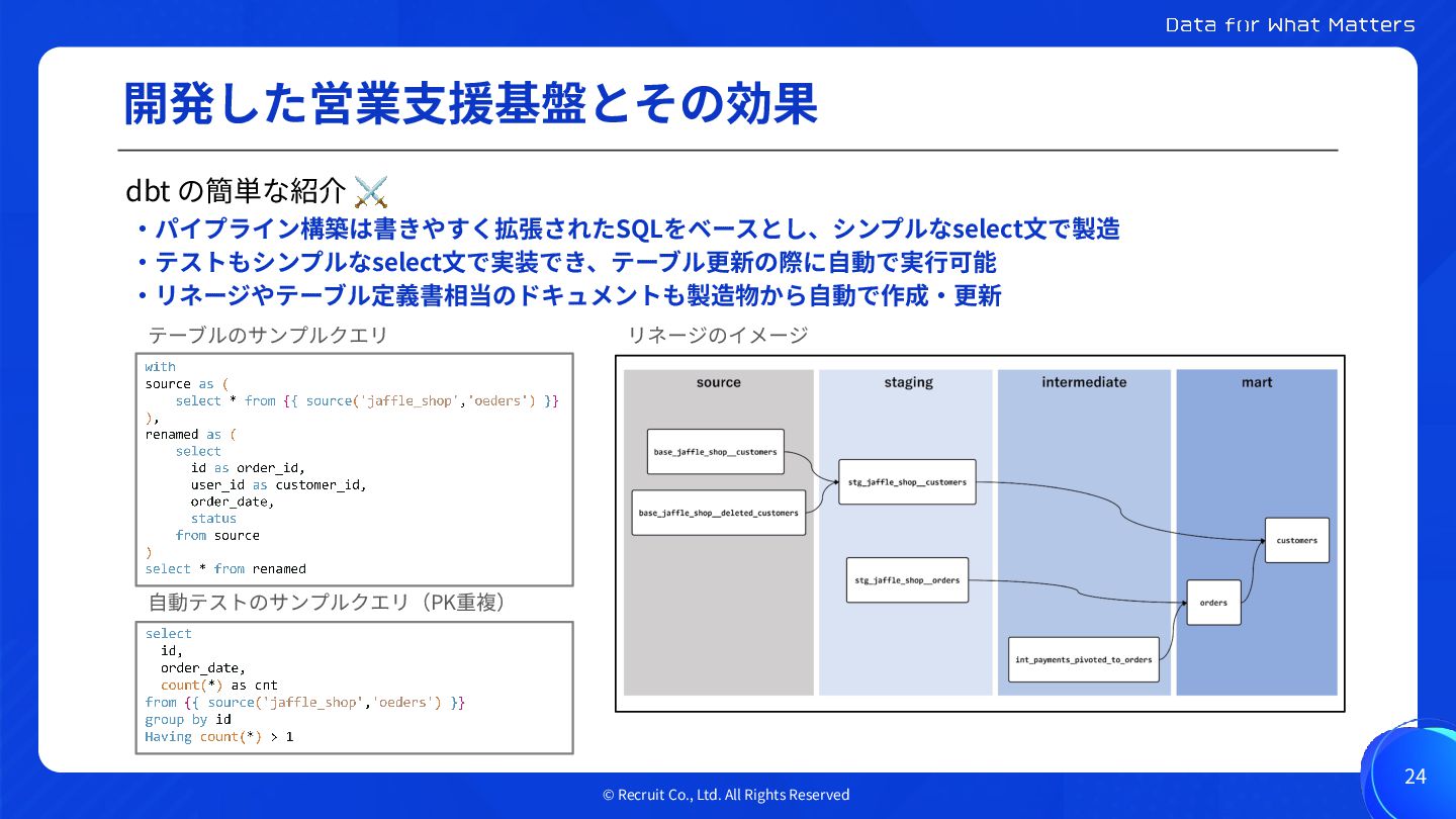 © Recruit Co., Ltd. All Rights Reserved 開発した営業⽀援基盤とその効果 24 dbt
