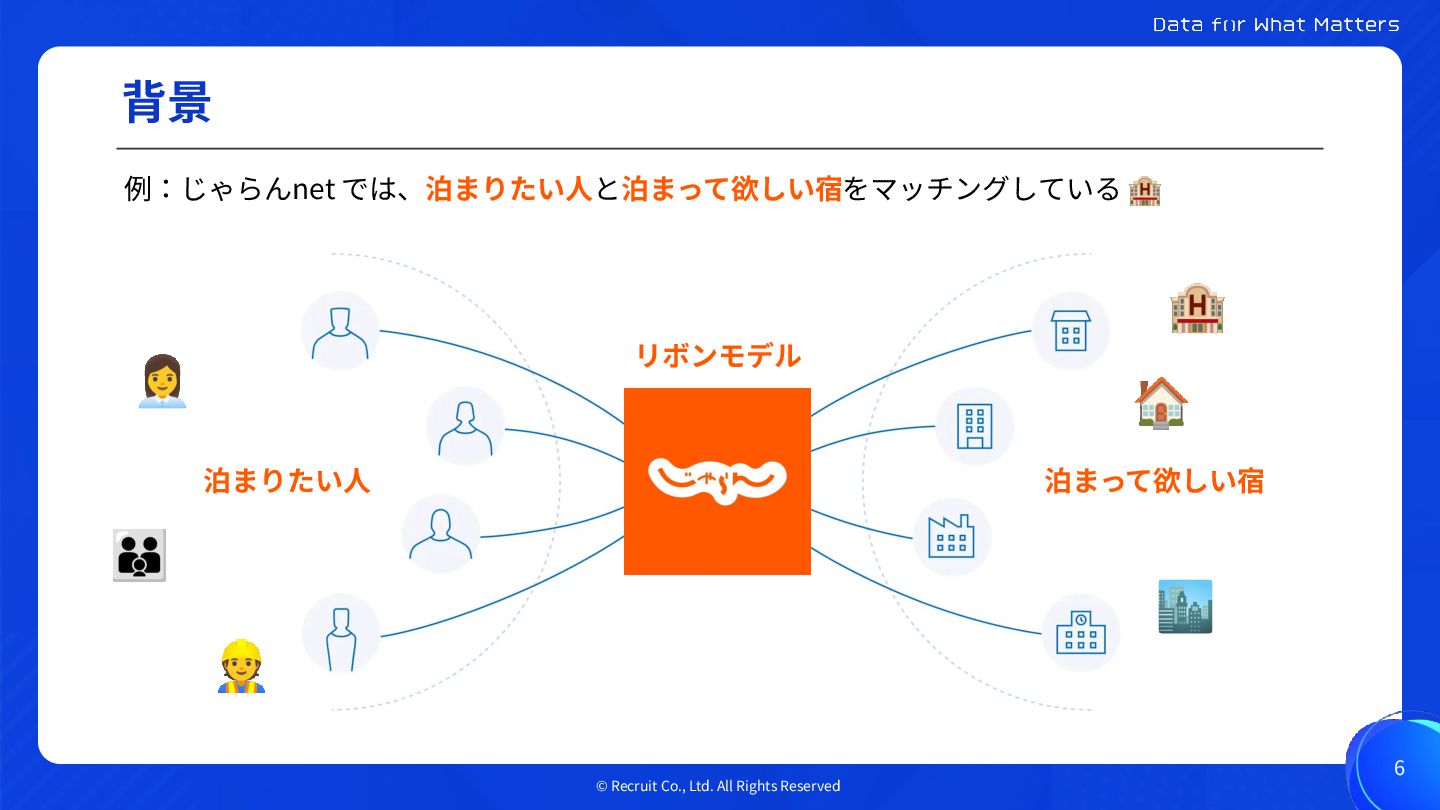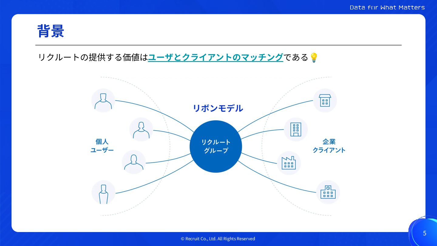 © Recruit Co., Ltd. All Rights Reserved 背景 5 リクルートの提供する価値はユーザとクライアントのマッチングである💡
