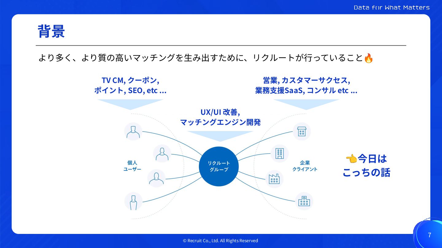 © Recruit Co., Ltd. All Rights Reserved 背景 7 より多く、より質の⾼いマッチングを⽣み出すために、リクルートが⾏っていること🔥
