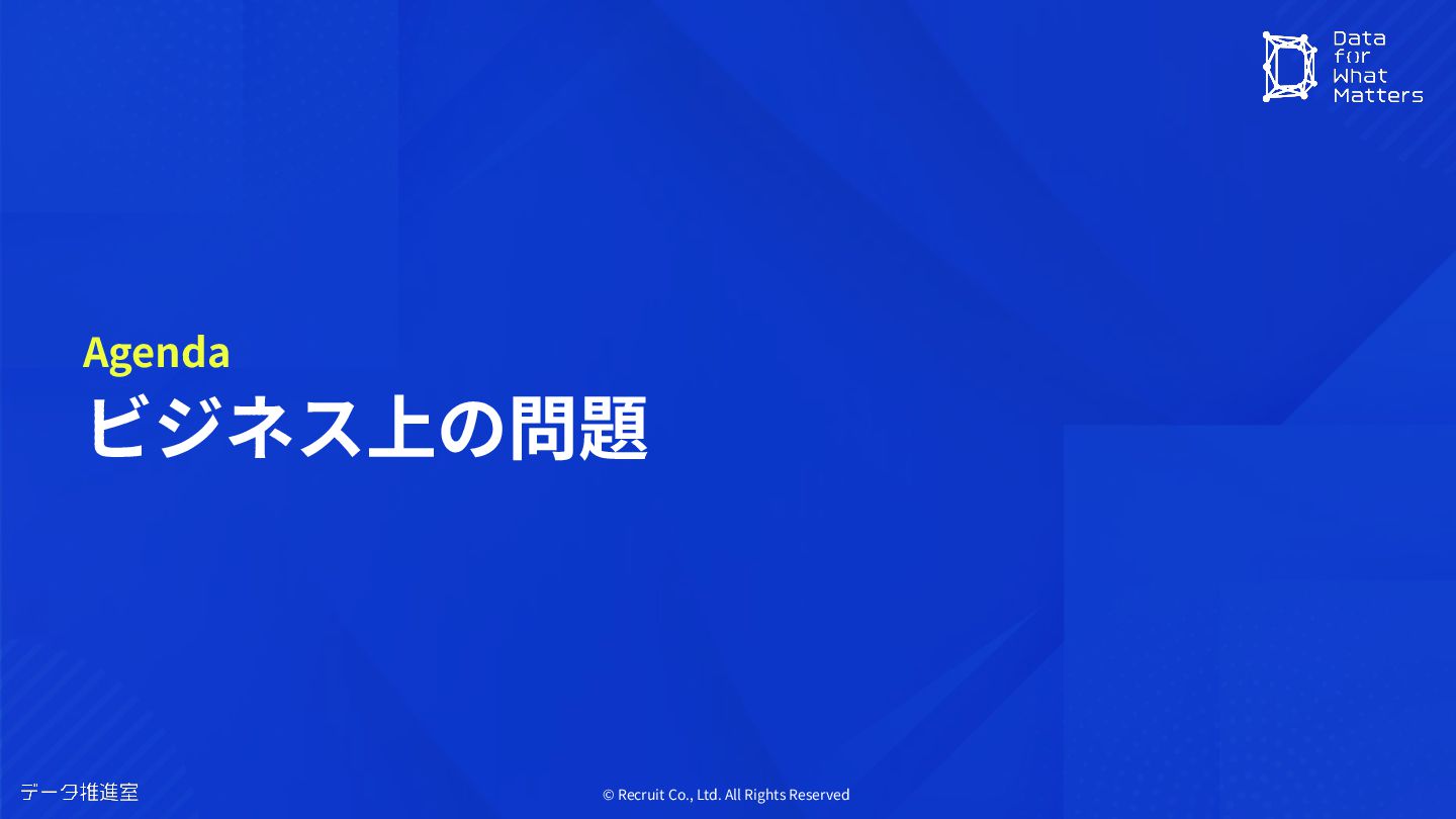 © Recruit Co., Ltd. All Rights Reserved ビジネス上の問題 Agenda
