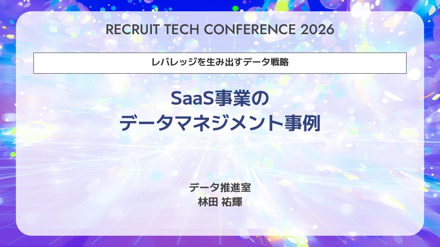 RECRUIT TECH CONFERENCE 2026 レバレッジを生み出すデータ戦略 SaaS事業の データマネジメント事例 データ推進室 林田 祐輝