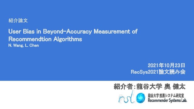 [RecSys2021論文読み会]User Bias in Beyond-Accuracy M...