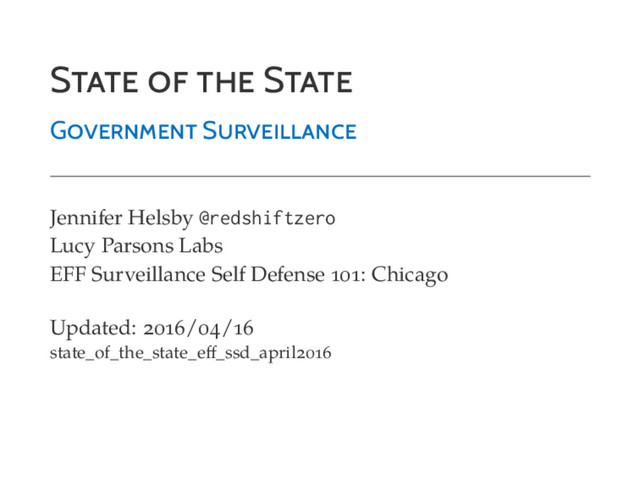 Luther King tells us about the modern spy era", Slate Malkia Cyril, Center for Media Justice, Black Americans and encrytion: the stakes are higher than Apple v FBI, The Guardian EFF, Street Level Surveillance https://www.eff.org/s s Jennifer Helsby, Lucy Parsons Labs, Police Surveillance in Chicago https://redshiftzero.github.io/po icesurvei ance/