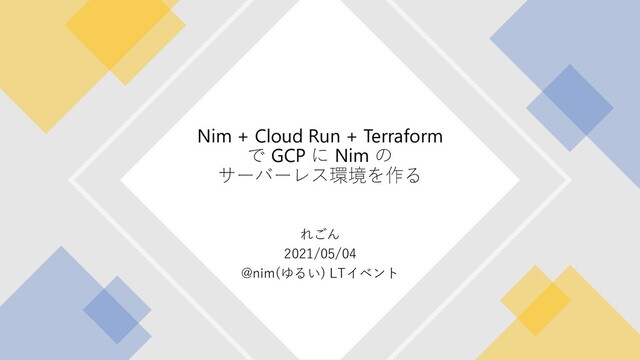 れごん 2021/05/04 @nim(ゆるい) LTイベント Nim + Cloud Run + Terraform
