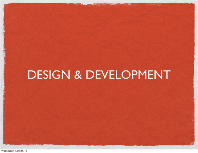 DESIGN & DEVELOPMENT Wednesday, April 24, 13
