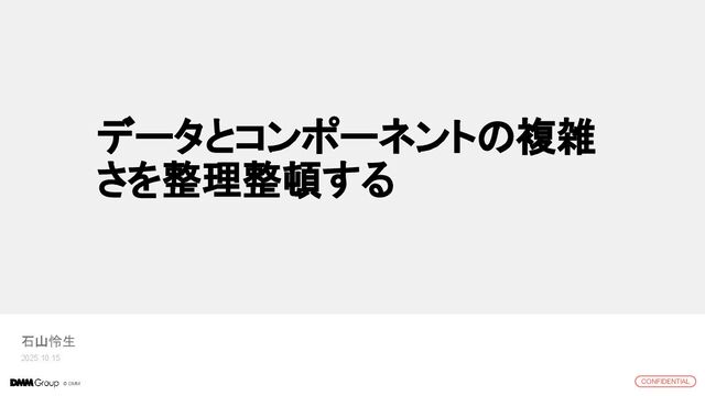 © DMM © DMM CONFIDENTIAL データとコンポーネントの複雑 さを整理整頓する 石山怜生 2025.10.15