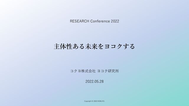 主体性ある未来をヨコクする コクヨ株式会社 ヨコク研究所 2022.05.28 RESEARCH Conference 2022 Copyright © 2022