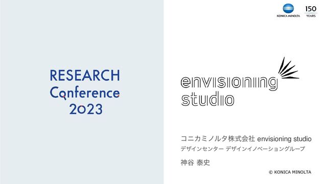 コニカミノルタenvisioning studio(エンビジョニングスタジオ)は、未来を共に想い描き、新たな価値を可視化することで、社会へ未来貢献することを目指す新価値創出スタジオです。スペキュラティブデザインやトランジションデザインなどのデザインのアプローチをベースとしたenvisioning processと、これまでに取り組んだ事例として、コニカミノルタの150年の歴史を起点として未来をenvisionし、企業が見据える未来への視界をひらく取り組みについてお話いたします。
