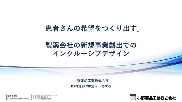 独創的な新薬を上市してきた小野薬品工業。昨年から患者ウェルビーイングへの貢献を目指し、インクルーシブデザインのアプローチで新規事業開発に取組んでいます。