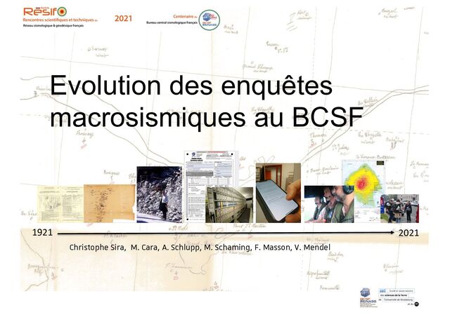 @franceseisme http://www.franceseisme.fr/ [email protected] https://renass.unistra.fr 1921–2021: 100 years of macroseismic studies at BCSF Christophe Sira, Michel Cara, Antoine Schlupp, FrédéricMasson, Marc Schaming and Véronique Mendel https://doi.org/10.5802/crgeos.87