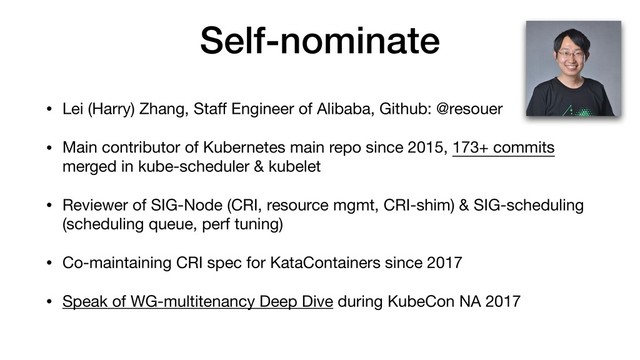 1. Self-nominate • Lei (Harry) Zhang, Staff Engineer of Alibaba, Github: