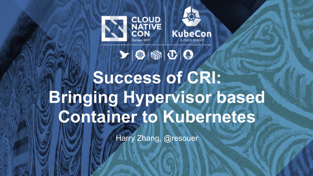 Success of CRI: Bringing Hypervisor based Container to Kubernetes This is the speak I did at KubeCon 2017
