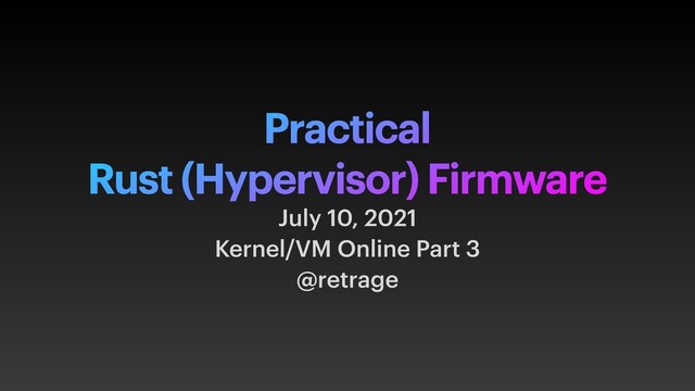 Rust Hypervisor Firmware is a small firmware written in Rust from scratch, which is dedicated to boot Linux cloud workloads on hypervisors. Since its main focus is to boot Linux, the supported guest OS is limited to the customized Ubuntu VM images and Clear Linux. In this talk, I will talk about how to boot recent versions of Windows from the firmware. In addition, I will describe how to port it to a physical machine like MinnowBoard MAX.