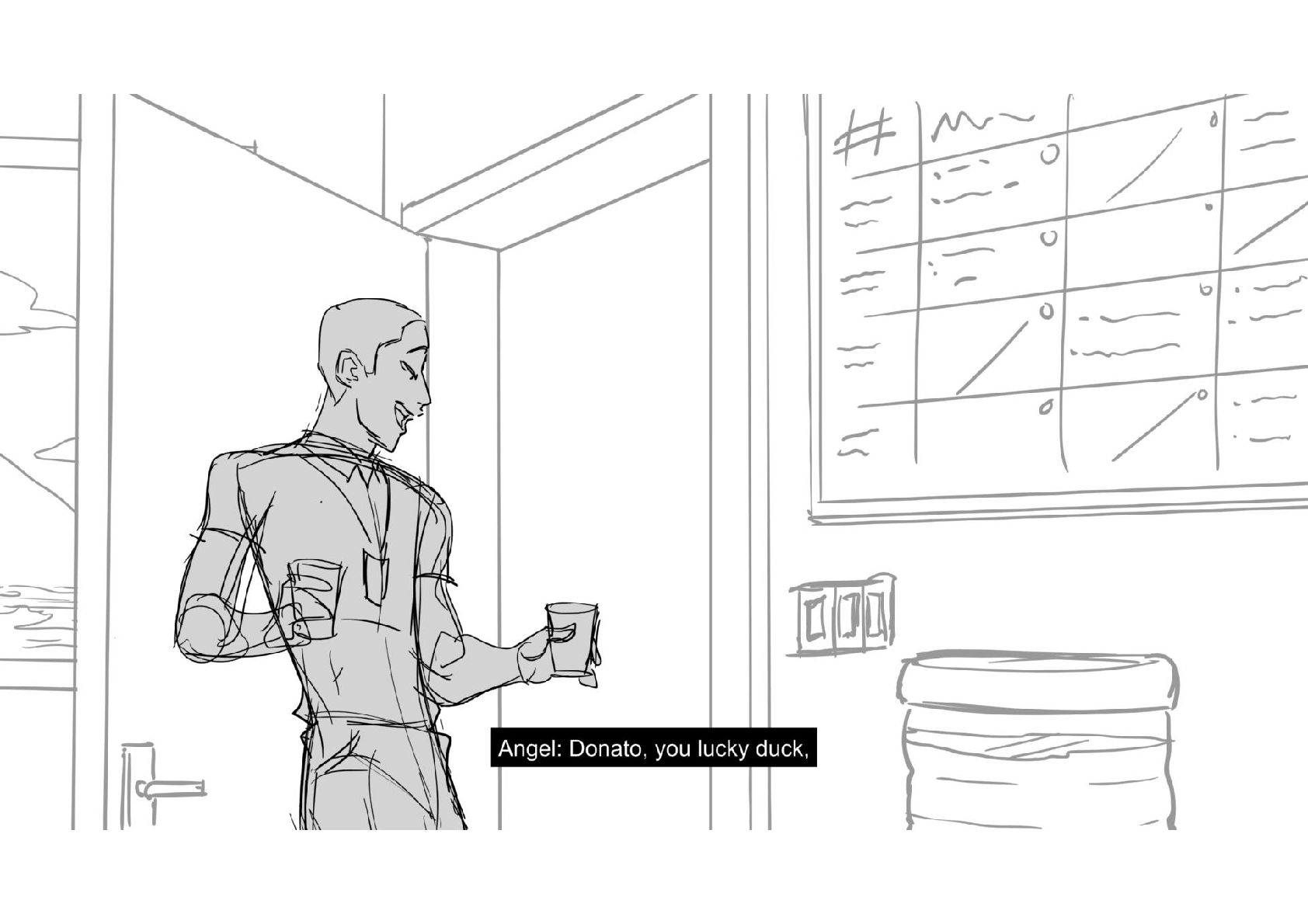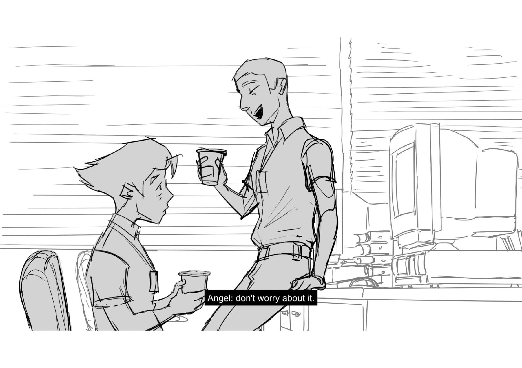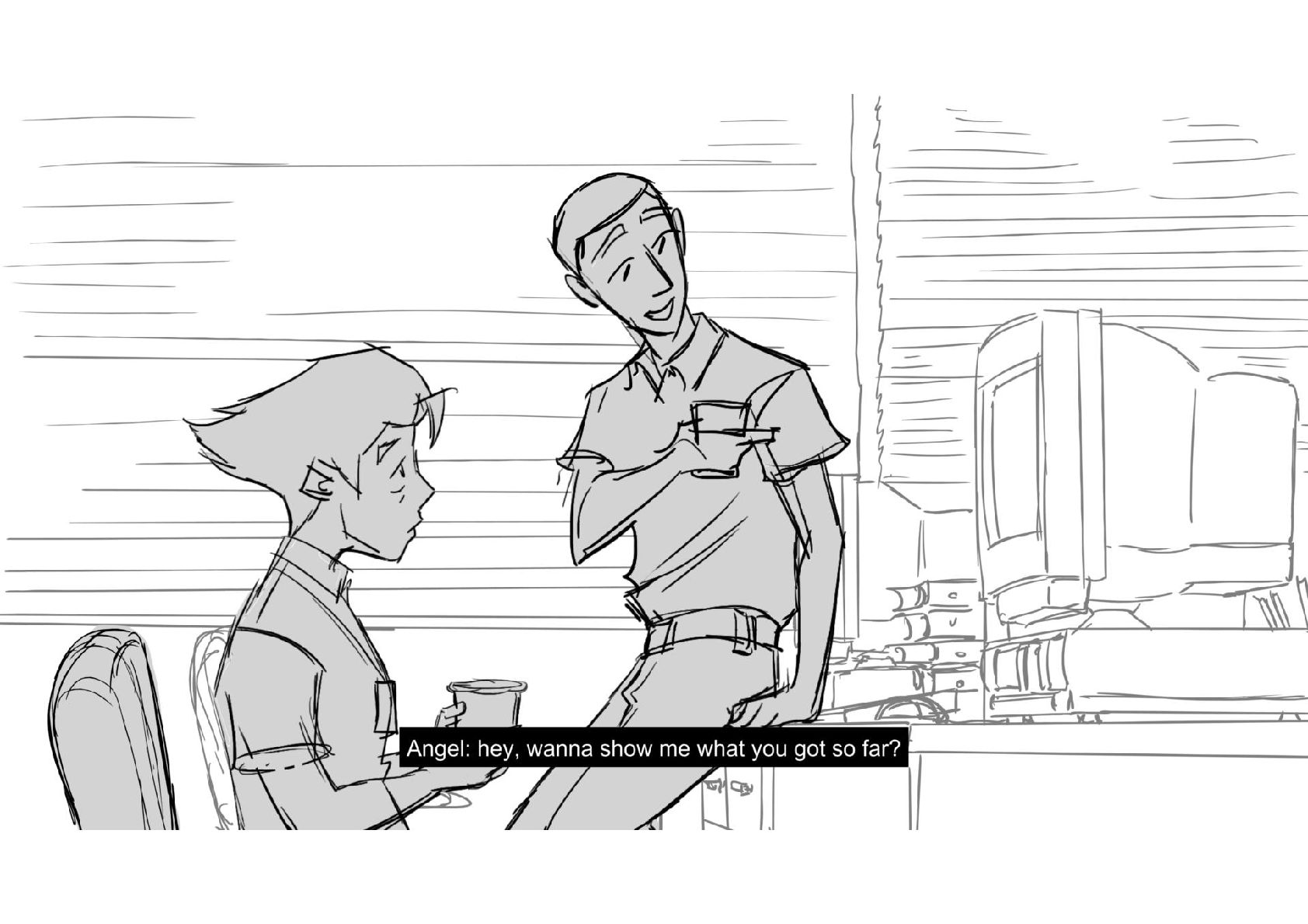 Assignment for Alex Chiu's workshop on Storyboarding Dialogue Scenes. Amazing work came out of that class. Thank you Alex!