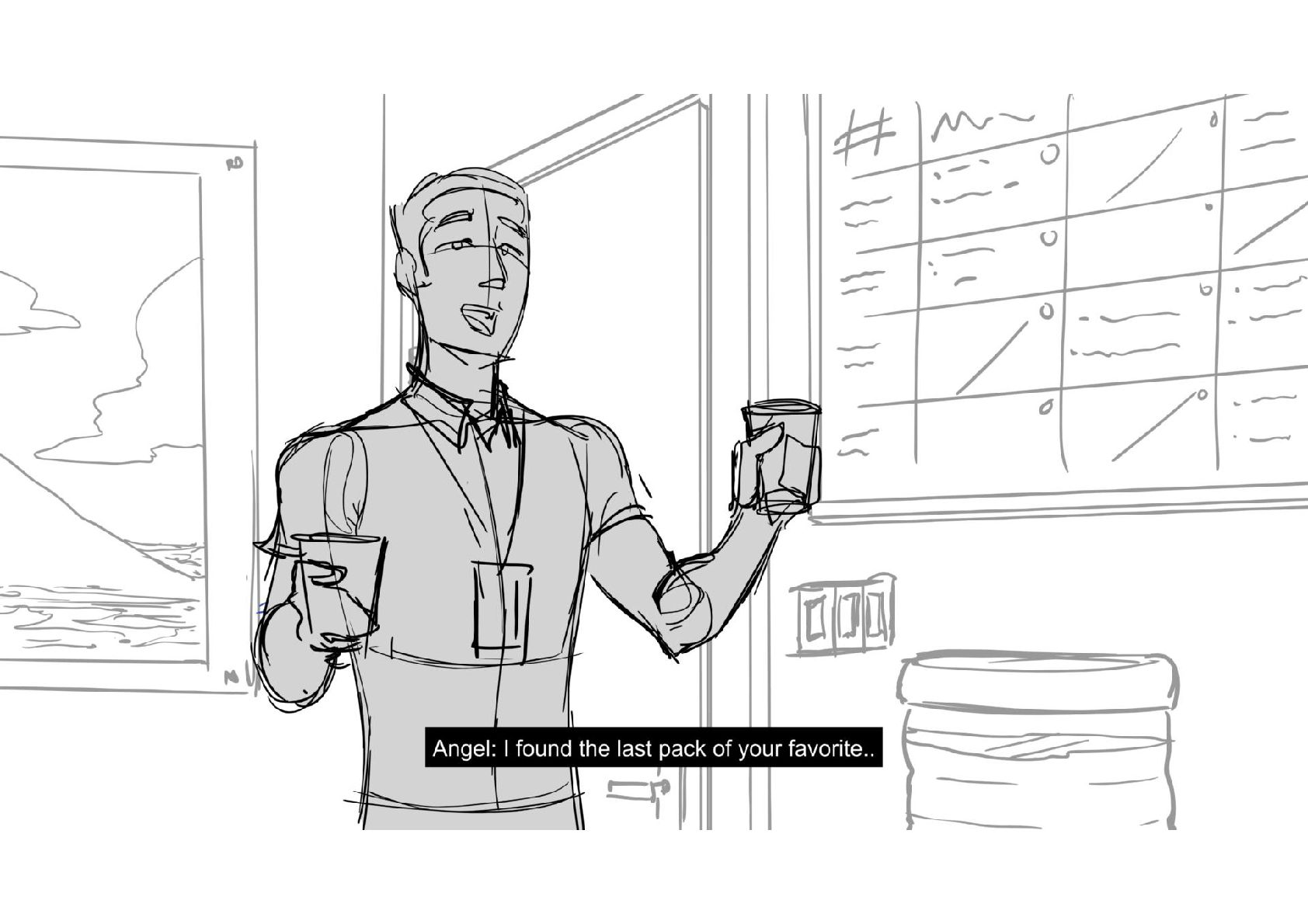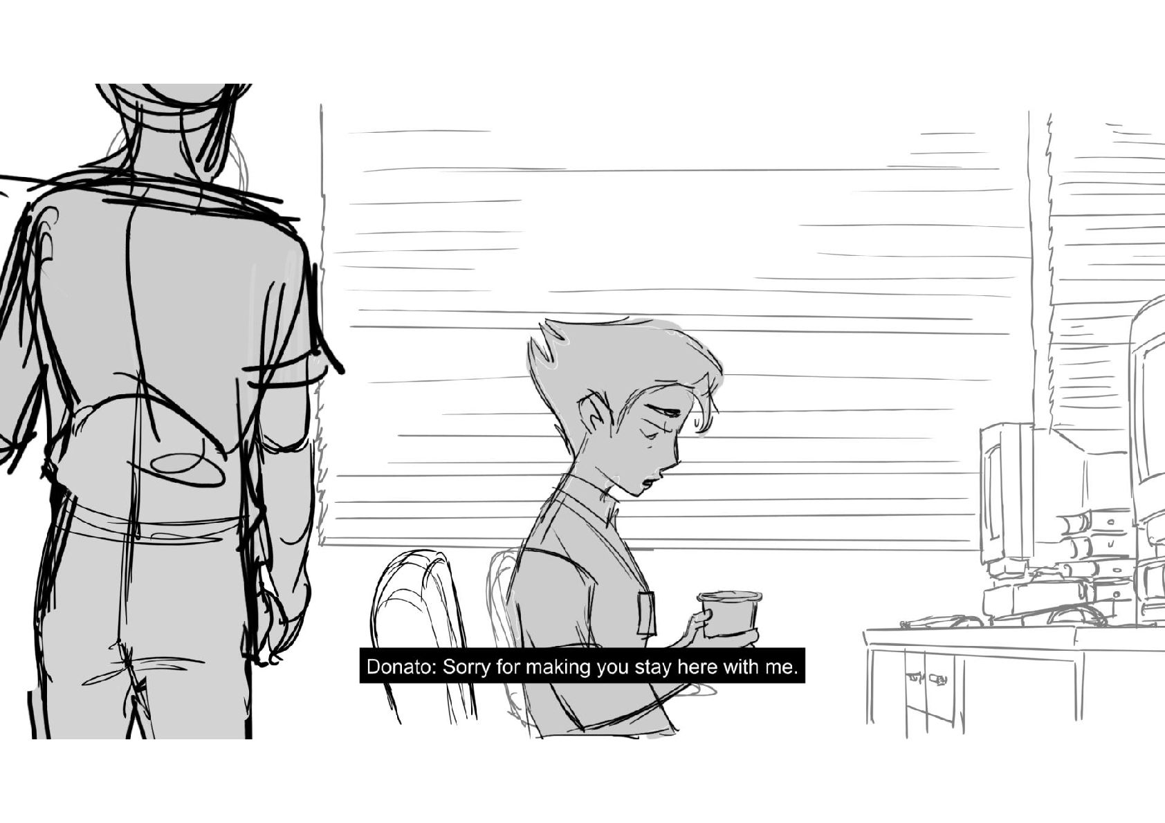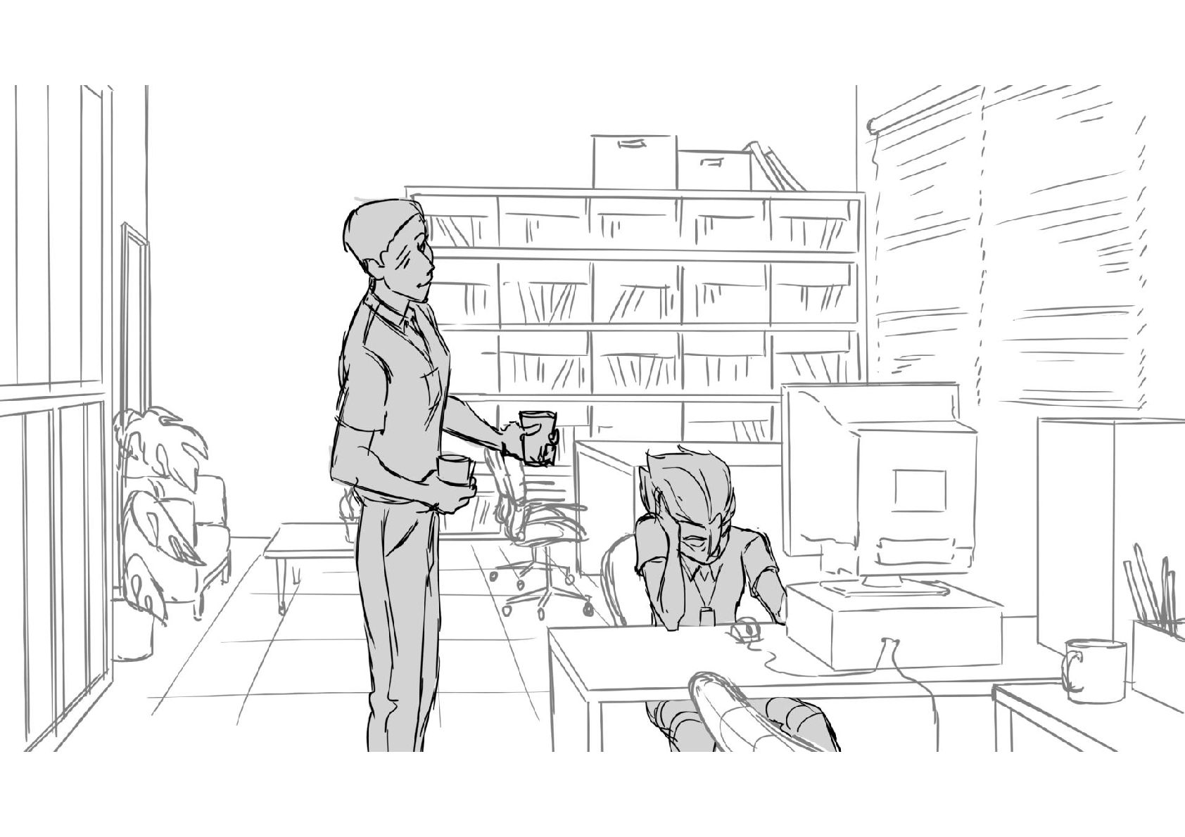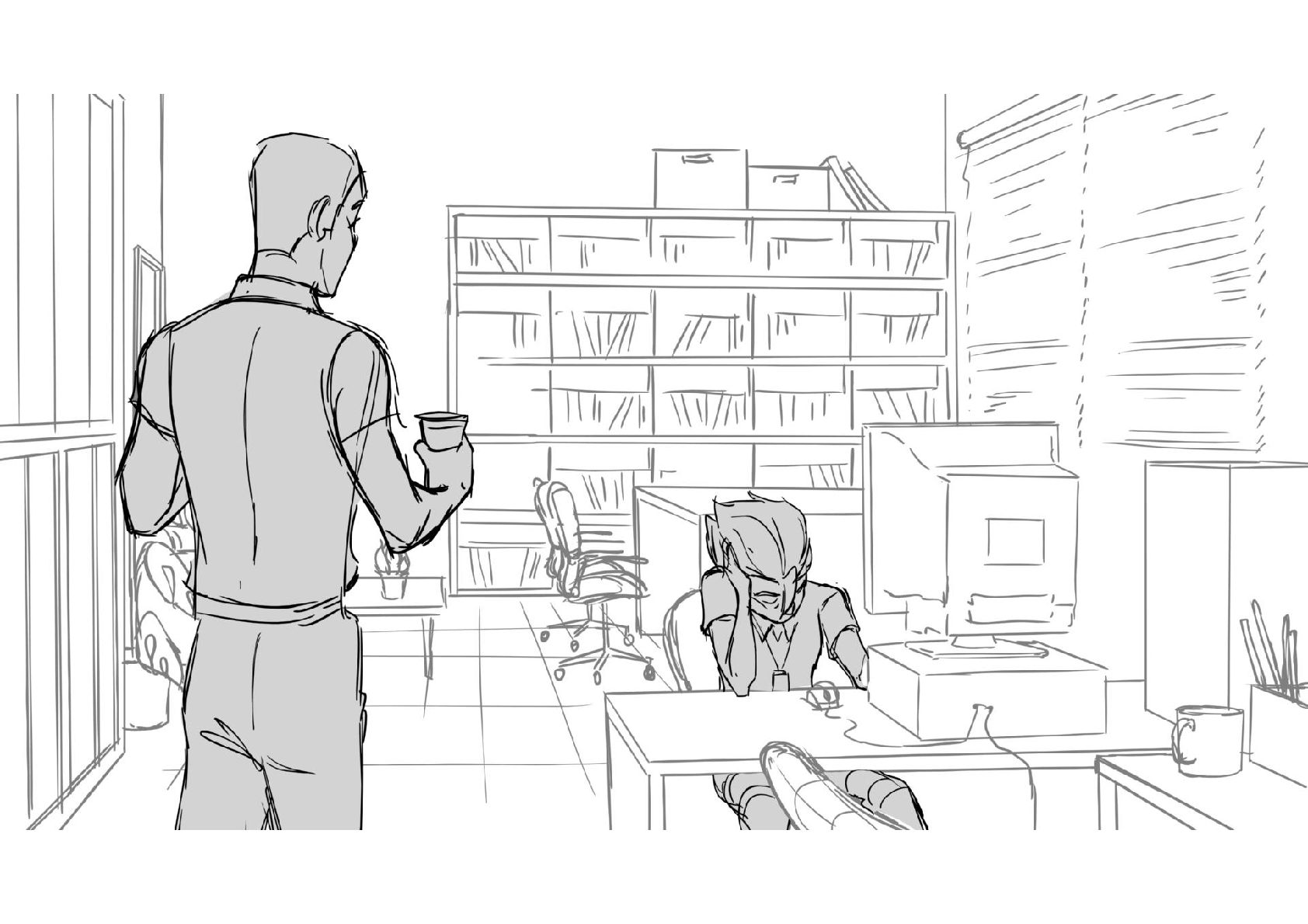 Assignment for Alex Chiu's workshop on Storyboarding Dialogue Scenes. Amazing work came out of that class. Thank you Alex!
