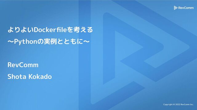 Copyright © 2022 RevComm Inc. よりよいDockerfileを考える ~Pythonの実例とともに~ RevComm Shota Kokado