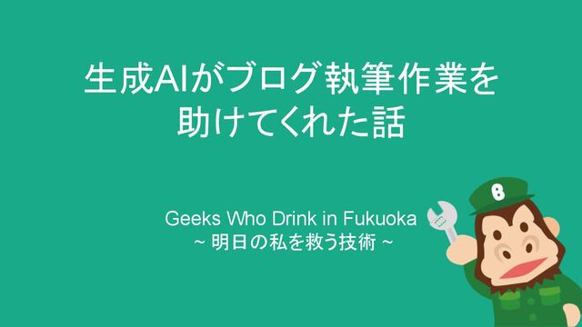 生成AIがブログ執筆作業を 助けてくれた話 Geeks Who Drink in Fukuoka ~ 明日の私を救う技術 ~